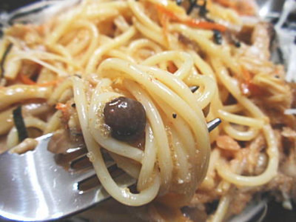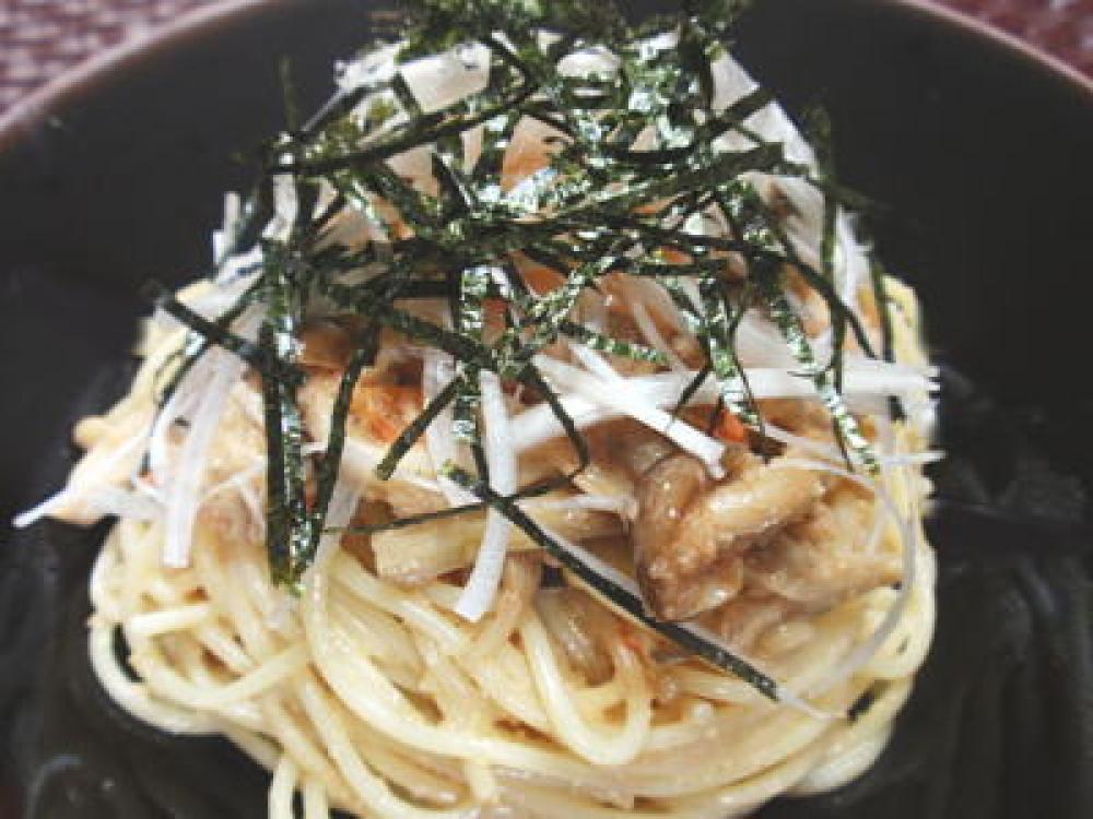 4のボウルにほぐした明太子とマヨネーズを加えて全体によく混ぜ合わせたら、1のパスタを加えてよく和え、