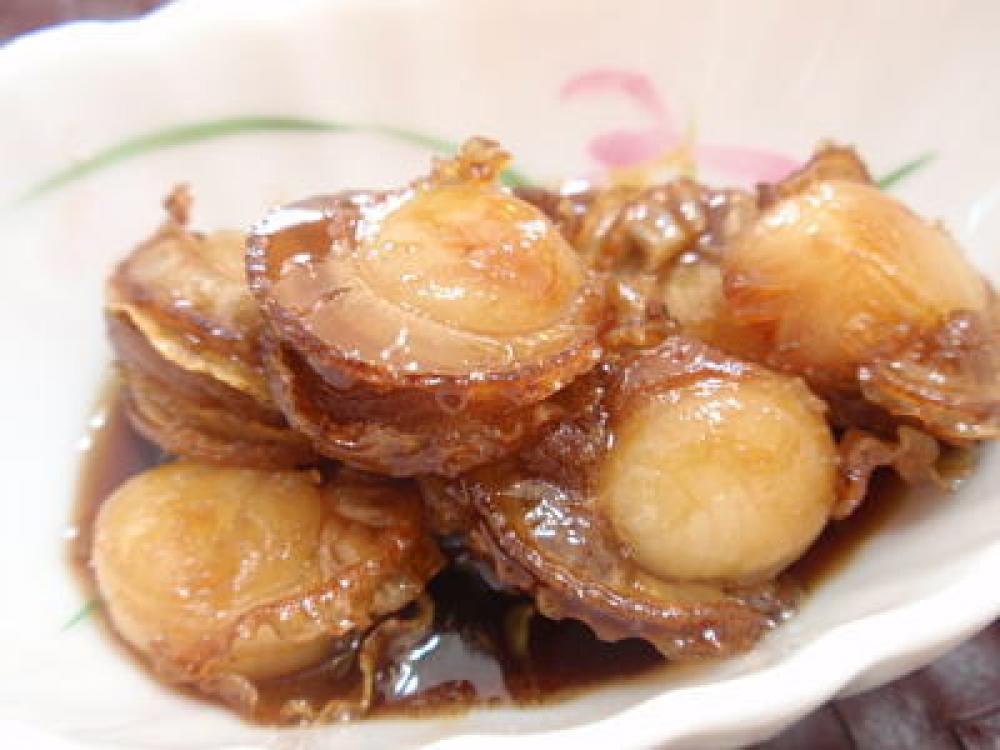 鍋に酒とみりんを加えて火にかけ、沸騰してきたら醤油と蒸しホタテを加えて中~弱火で煮れば完成です。