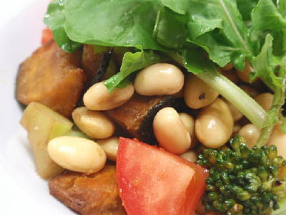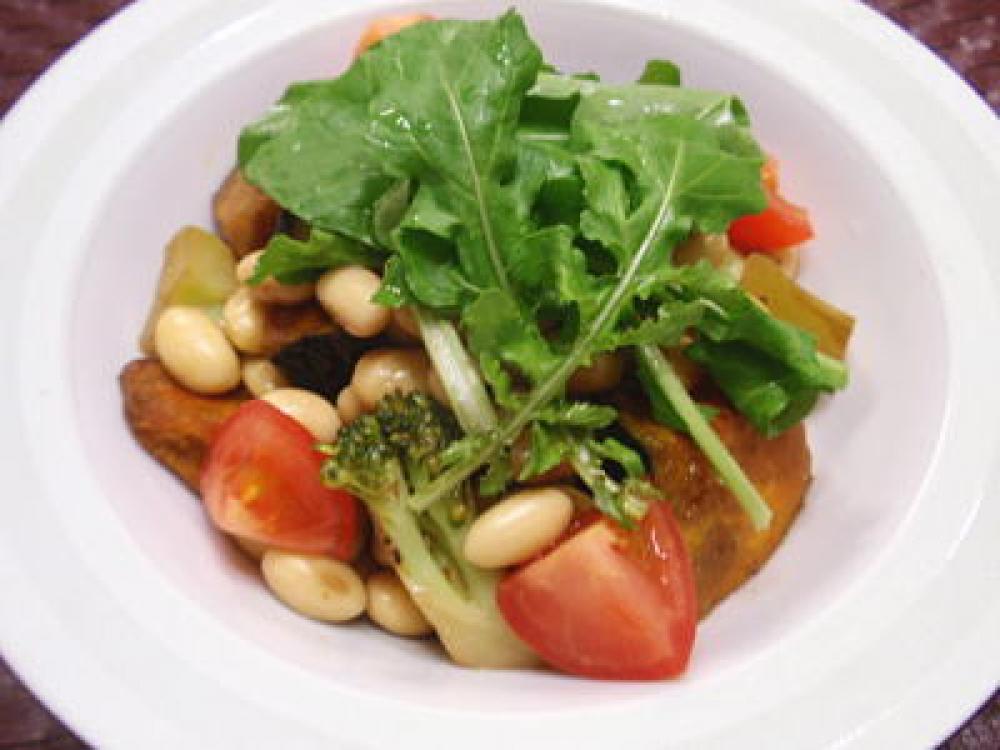 ![]() 大豆の水煮と1~3を器に盛り、よく混ぜ合わせたドレッシングをまわしかけ、ルッコラをトッピングすれば完成です。