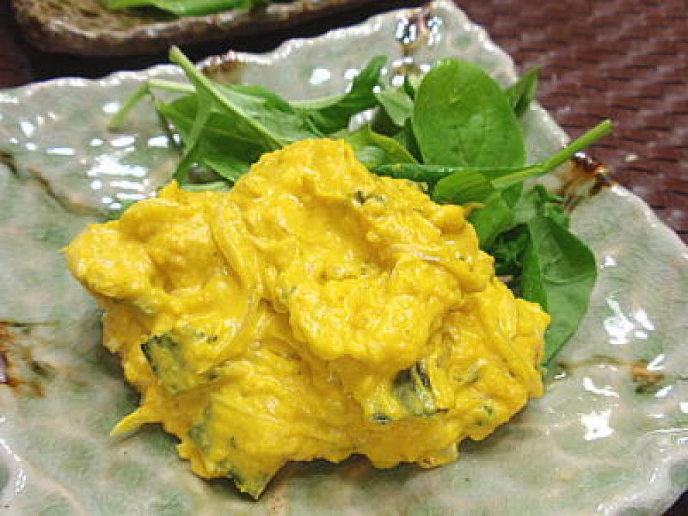かぼちゃは2~3センチくらいにカットしてからレンジや蒸し器などで火を通し、熱いうちにフォークなどで潰します。