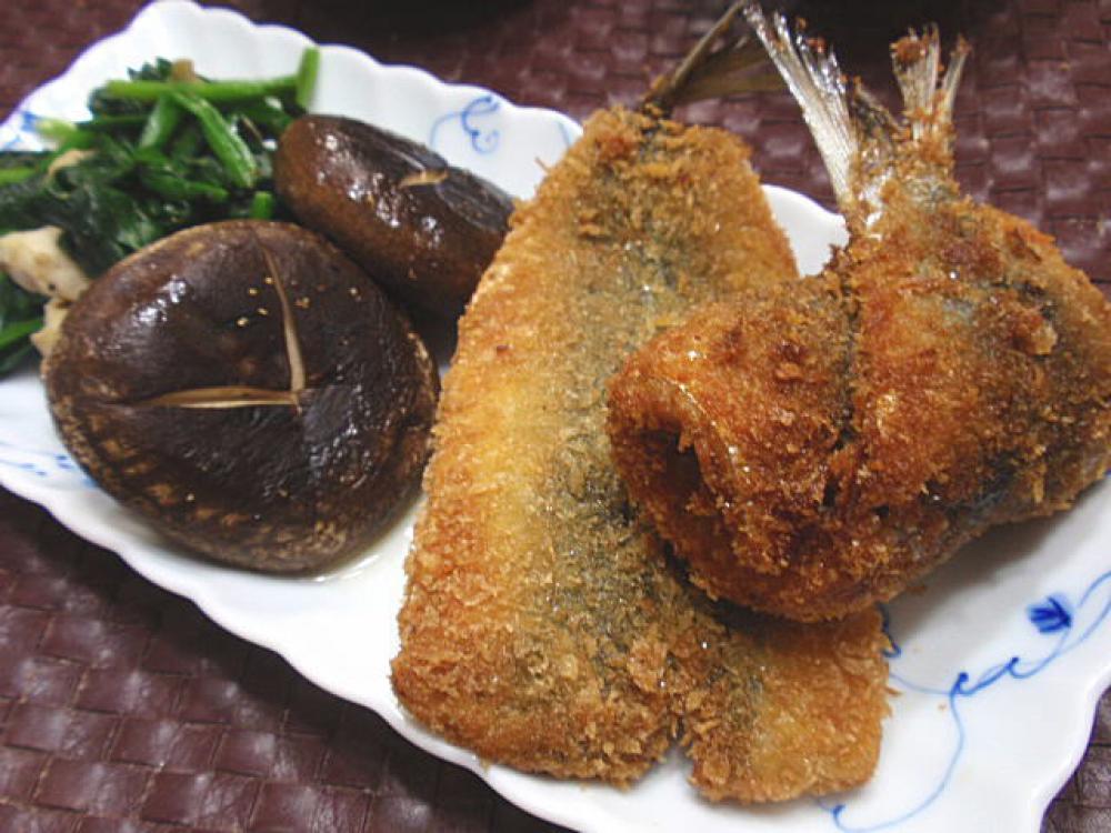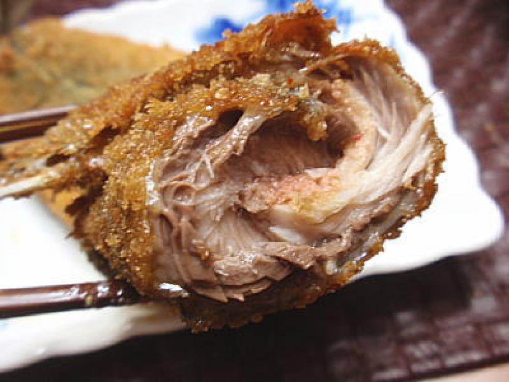 ![]() 崩れないように爪楊枝を数本差して固定したら、小麦粉→溶き卵→パン粉の順に衣をつけ、油でこんがり揚げれば完成です。