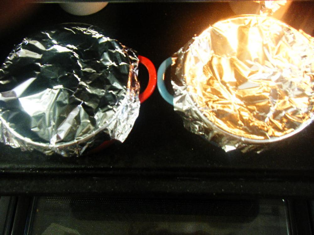![]() そして、プリン液をお好みの器に注ぎ、アルミホイルでフタをして、レンジで20分程