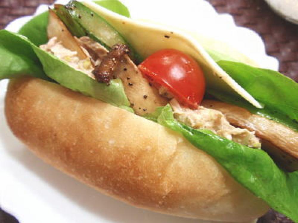 焼きたてパンの中央に包丁で切り込みを入れたら、グリルした野菜やチーズ、ツナなど、お好みの具をサンドすれば完成です。