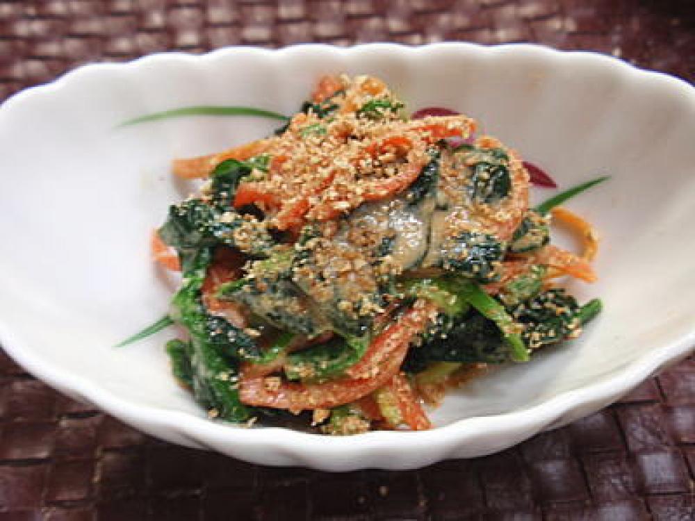 ほうれん草はサッと茹でてから冷水で冷やし、水気を絞って食べやすい長さに切り揃えます。