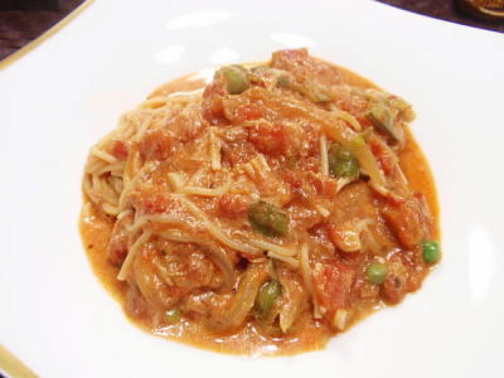 材料-Cを加えて煮詰めたら、トマトソースの完成です。