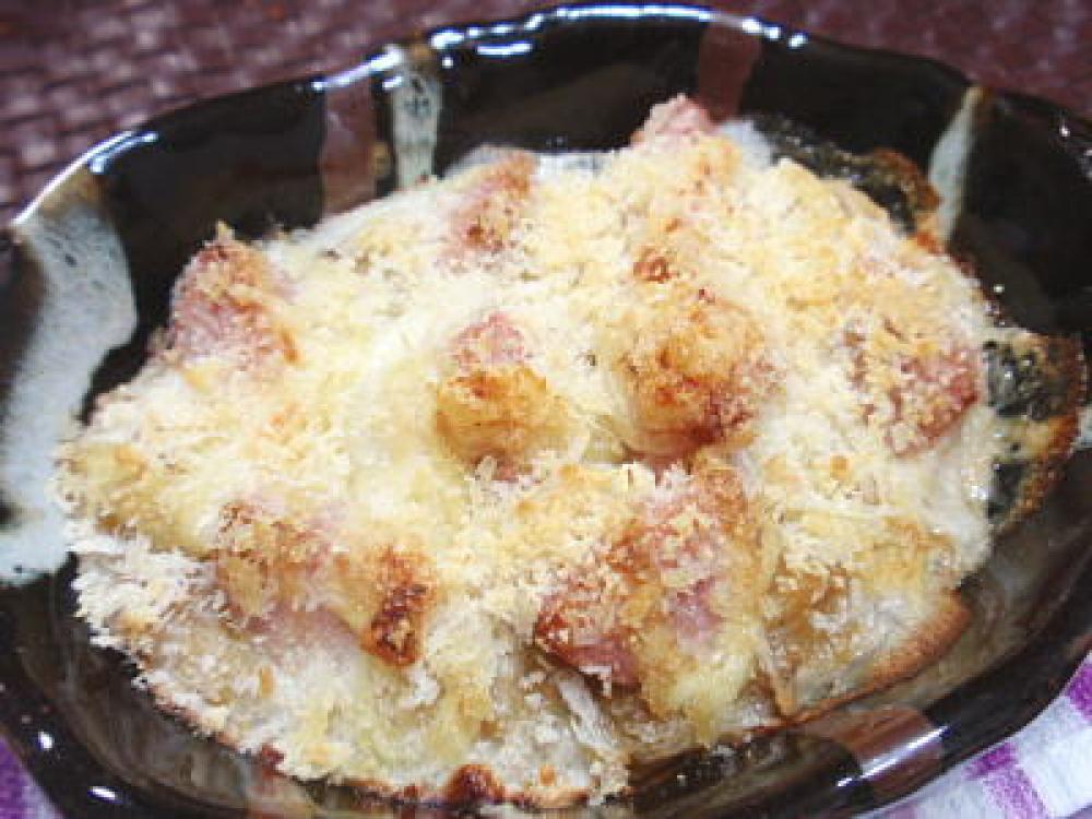 チーズを散らしたら、最後にパン粉をふり、220℃のオーブンで10~15分こんがりきつね色になるまで焼けば完成です。