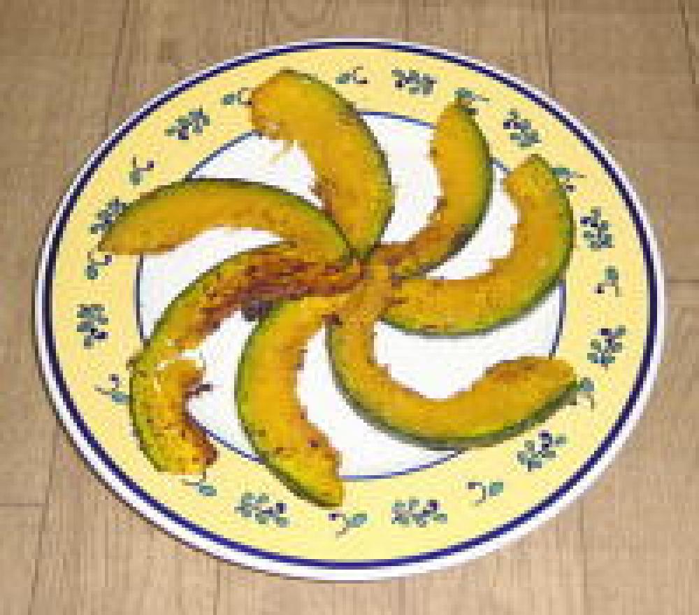 ![]() 塩とガーリックパウダーで味を調えたら、カボチャのガーリックグリルの完成です。