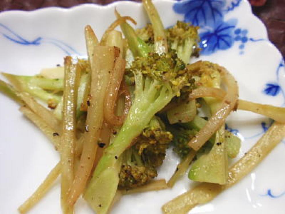 ブロッコリーは茎まで全て5センチくらいの長さに切り揃え、5ミリ幅の薄切りにします。