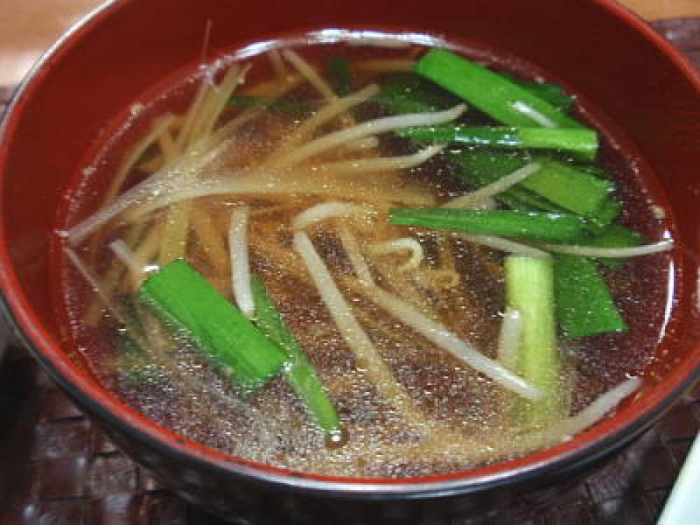 沸騰したら、もやしと、2~3センチの長さに切り揃えたニラを加えて1分ほど煮ます。