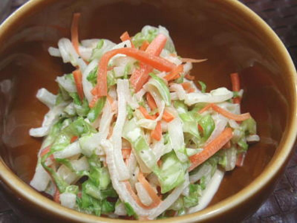 1の水気を絞ってボウルに入れたら、材料-Bを加えてよく和えれば完成です。