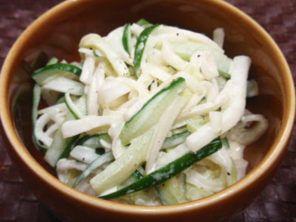 大根ときゅうりは長さを揃えて千切りにし、塩をふって5~10分ほど置いてから水気を絞っておきます。