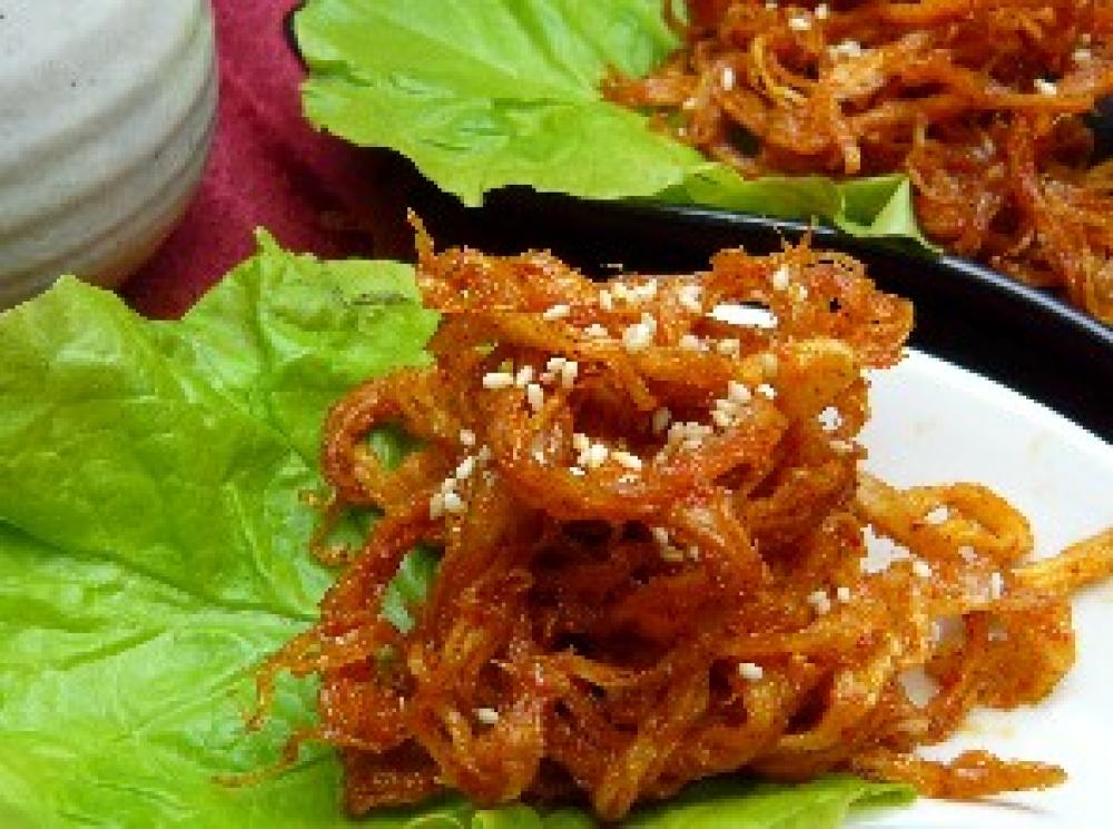 (1)にさきいかをいれ、よく混ぜ合わせる。