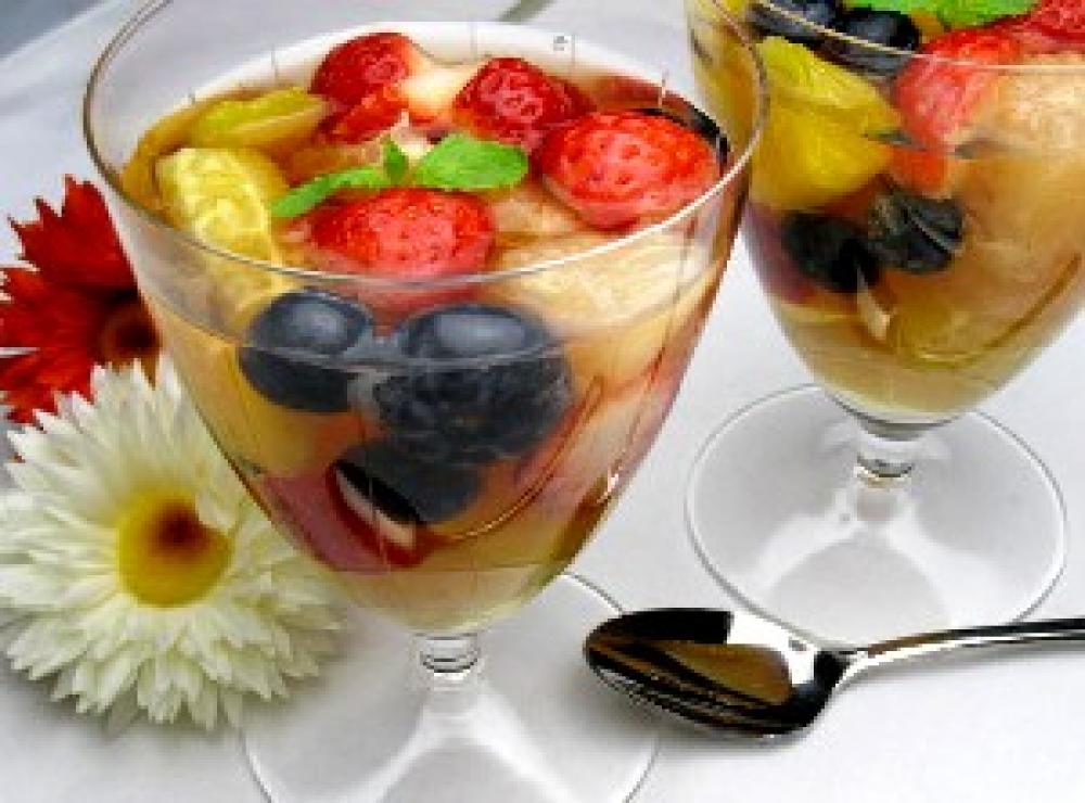 グラスにフルーツを入れ、上からゼラチン液を流し冷蔵庫を冷やし固める。