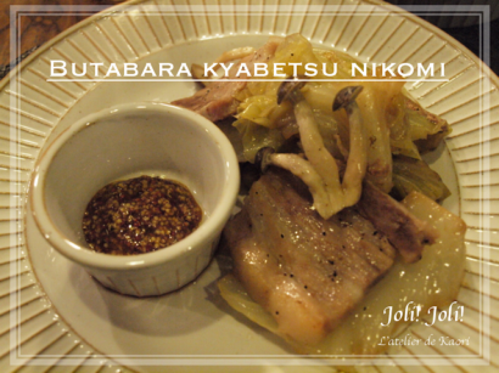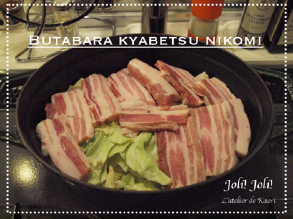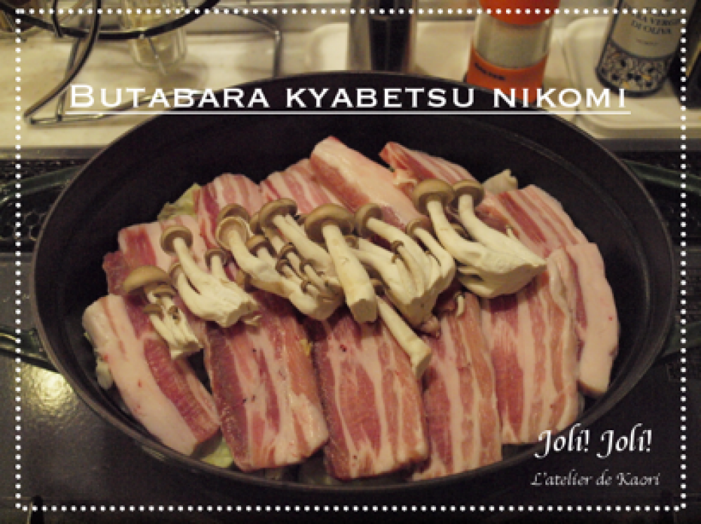 ![]() ②豚バラ200~250gを5mmくらいにスライスしキャベツの上に並べます。