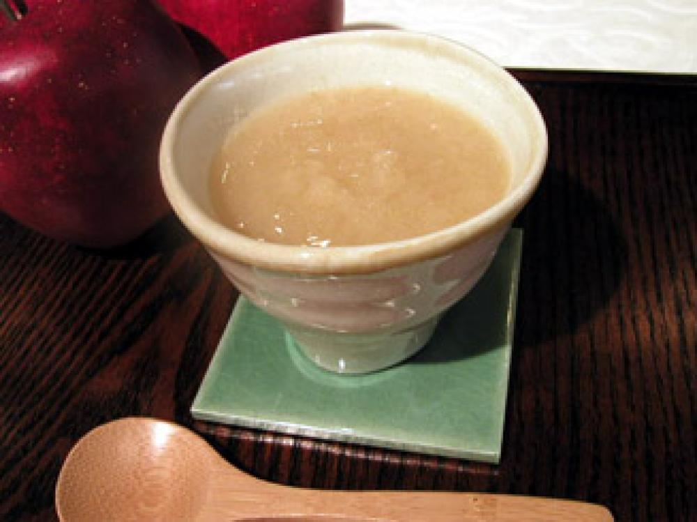 お鍋に水を入れて沸騰したらりんご(皮は剥いても剥かなくても)をおろしながら入れる。