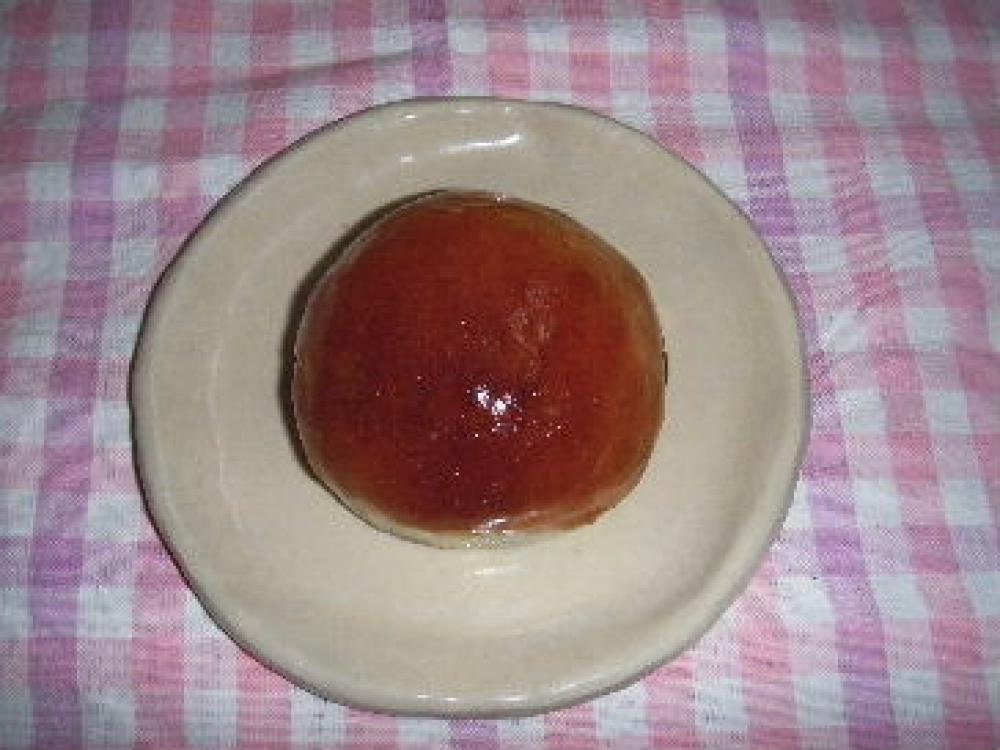 焼いたパンを冷ましつつ、鍋に細かく切った羊羹を入れ、火にかけ、混ぜながら溶かす。固さの様子をみて、水でのばす。