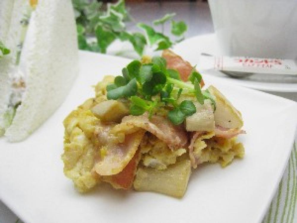 (2)の卵を流しいれ、スクランブルエッグにして出来上がり。