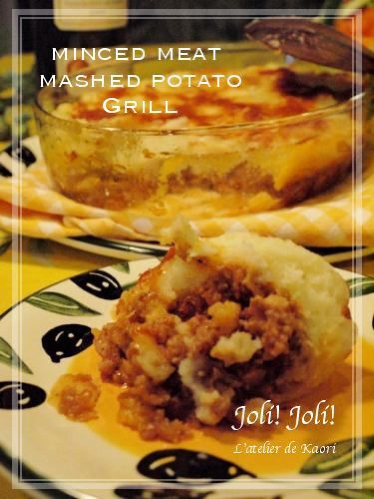 耐熱容器にひき肉を敷き、マッシュポテトを覆うようにかぶせます。