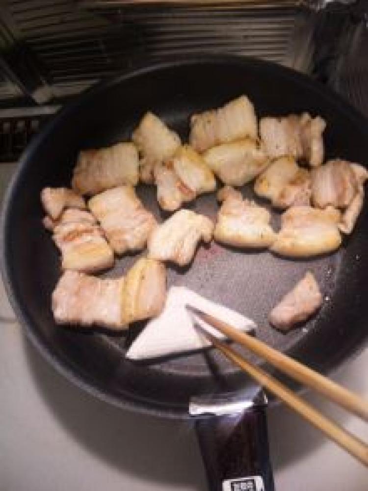 ![]() バラ肉なので途中油がジワジワ…キッチンペーパーで拭き拭き