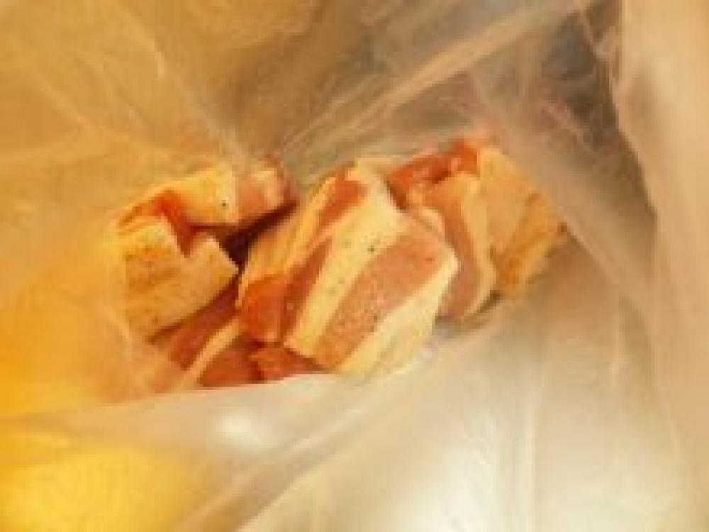 ![]() ブロックを1センチ位に切って袋に投入。塩コショウ…もみもみ。