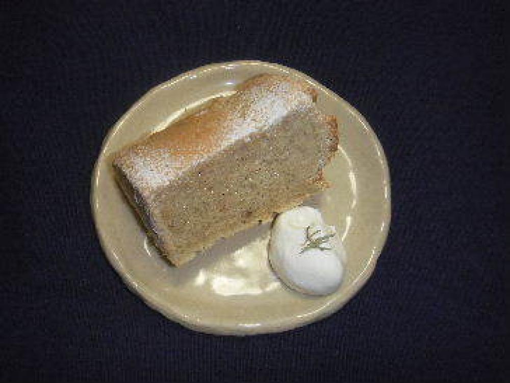 カットして盛り付け。今回は、ホイップした生クリームにローズマリーを添えました。