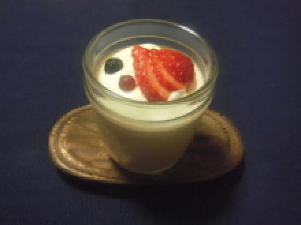 型に流し入れ、冷蔵庫で冷やす。お好みでトッピング。