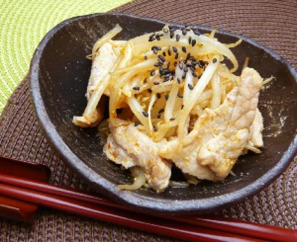 色が変わったら、もやしを炒める。