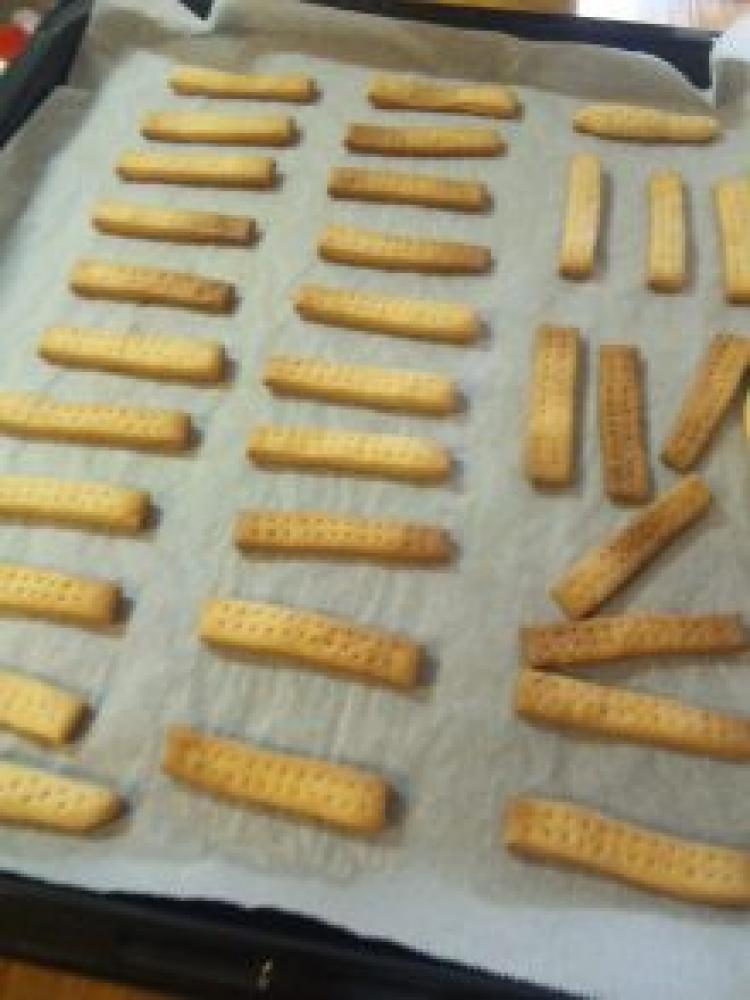 ![]() ハートと星や持ちやすいスティックなど、好きな形にする。温めておいたオーブンで15分~20分程焼く。