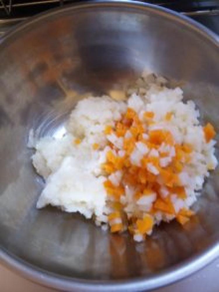 ![]() みじん切りにした蓮根と人参を3分程レンジにかけて、すりおろした蓮根と合わせる。
