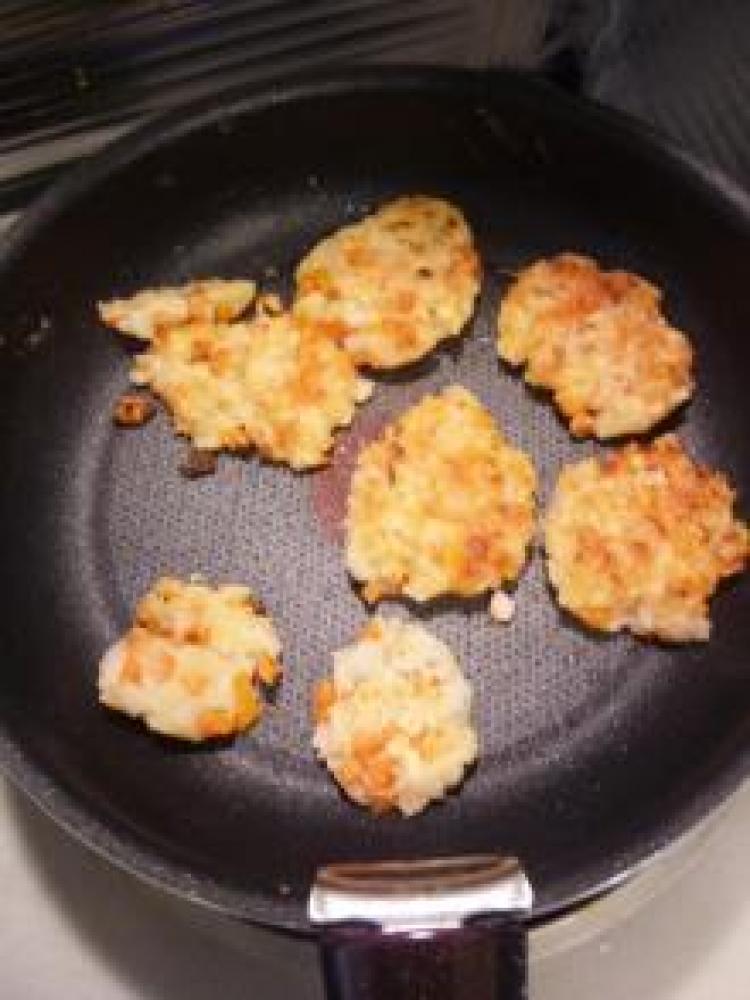 ![]() フライパンに多めの油を入れて焼く。焼き色がついたら出来上がり。