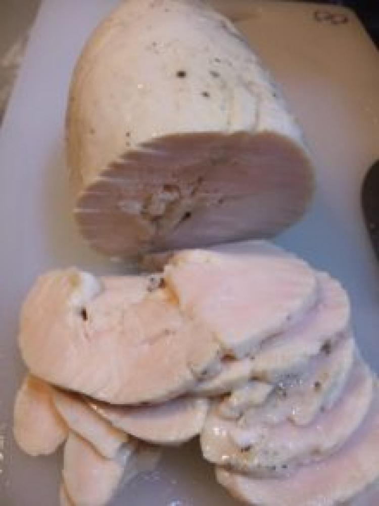 ![]() まず鶏肉の皮を剥ぐ。密封袋に鶏肉を入れ、その中に砂糖を投入し、もむ。