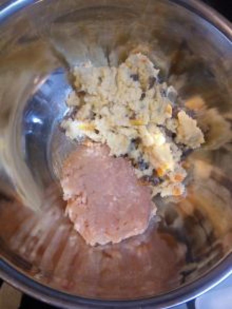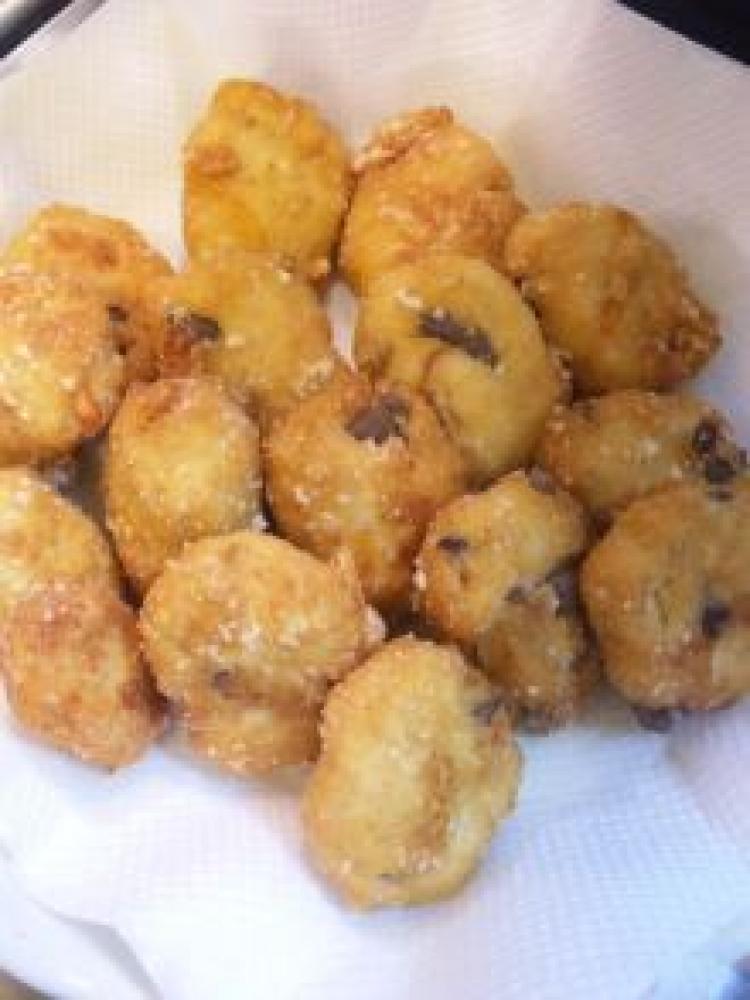 ナゲットの形にして180度の油で揚げる。