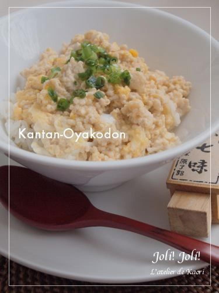 ![]() 軽く沸騰したらアクを除き、溶き卵を回し入れ、半熟のうちに丼に盛ったご飯に乗せます。