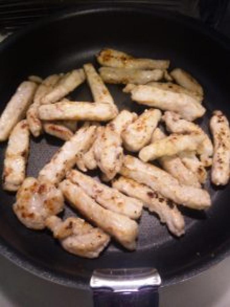 ![]() 袋に入れて。塩コショウ。片栗粉をまぶしたらフライパンに油を引き焼く。
