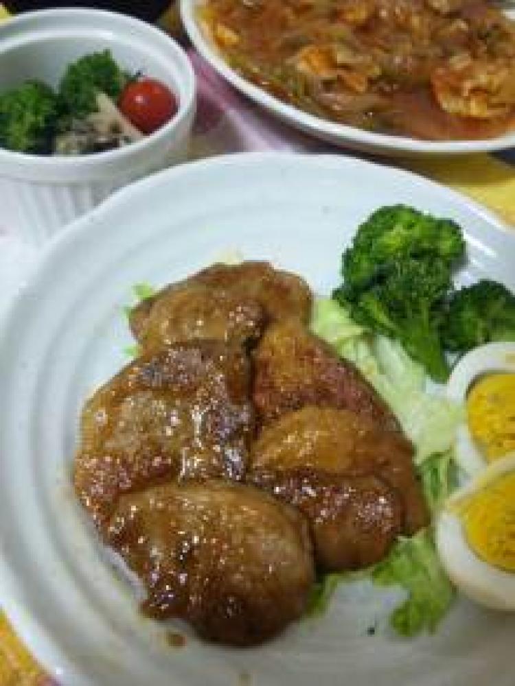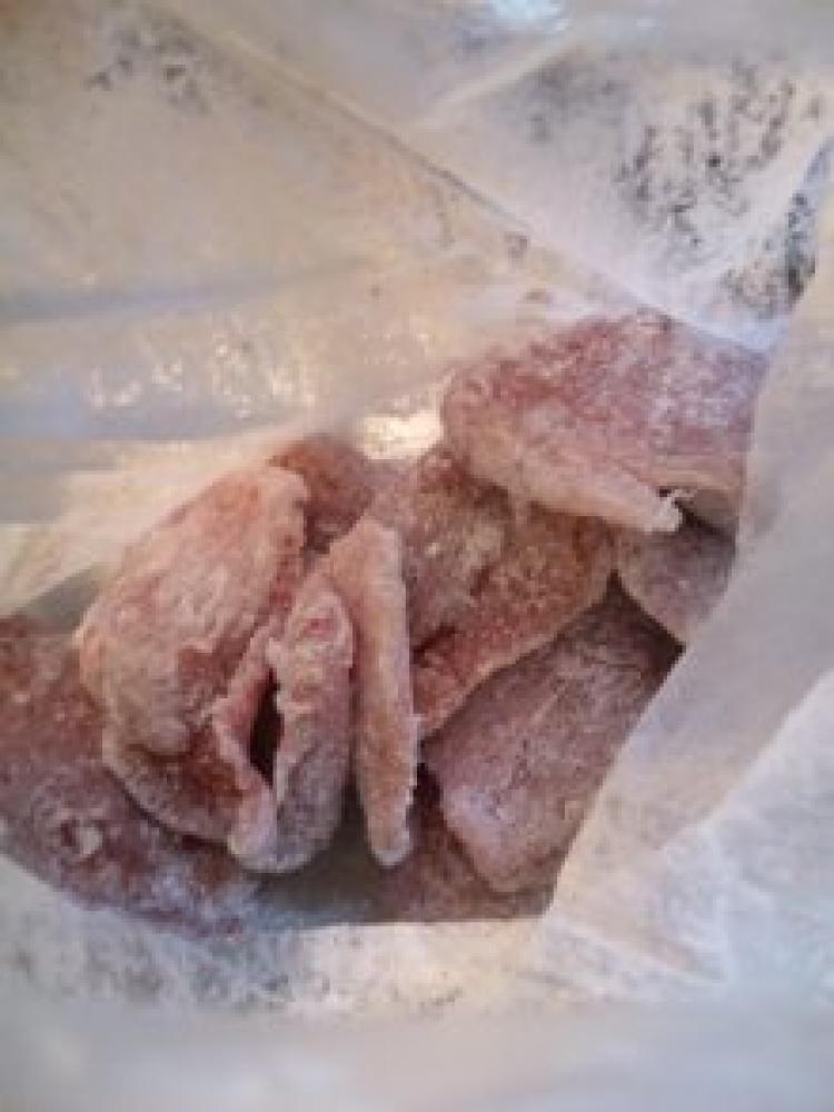 ![]() 豚ヒレを削ぎ切りにして塩・コショウ、片栗粉をまぶす。