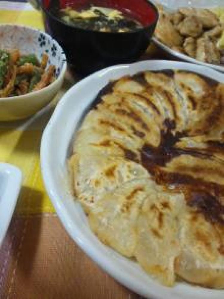 後は焼くだけ~~。軽く焼き色が付いたら、1/3くらいまでお湯を入れ蒸し焼きに。仕上げはごま油を少し入れてカリカリに焼けば