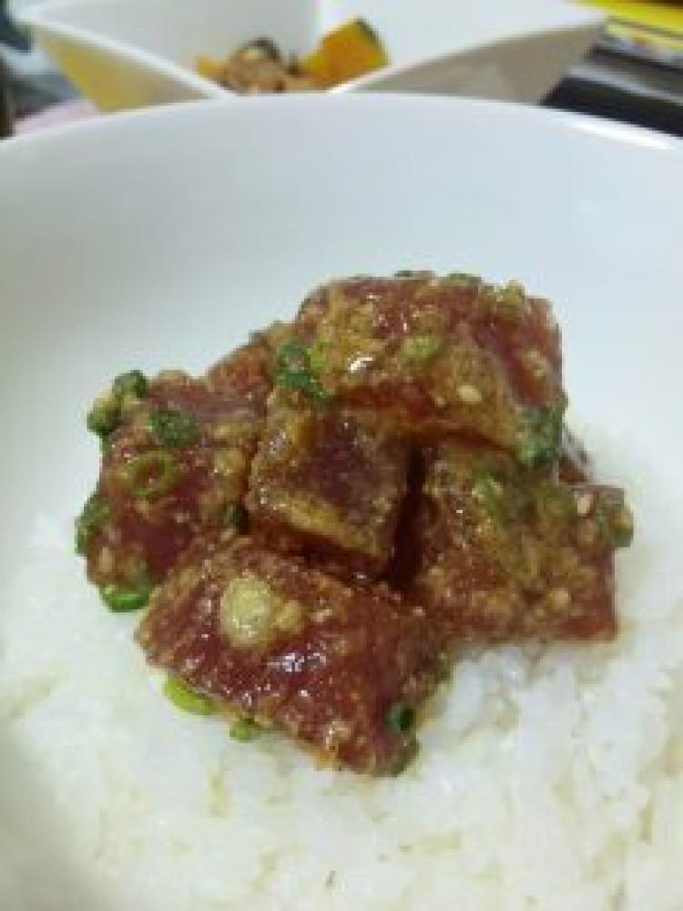マグロを2センチほどのさいころ状に切り、☆とねぎをあわせて完成。