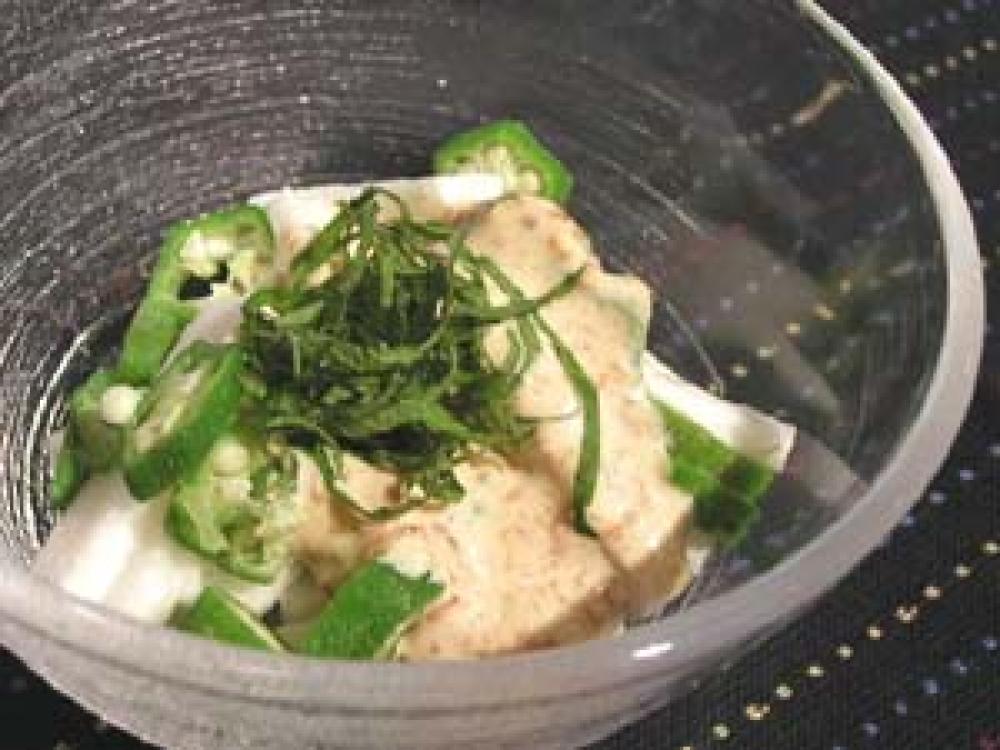 ごまを半ずりにし、マヨネーズ、ラカントS、しょうゆ、だし汁と混ぜる。