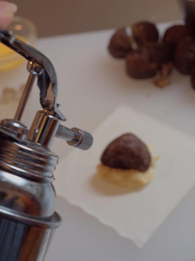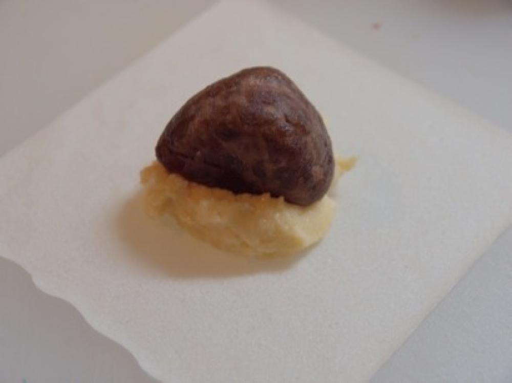 ![]() マロングラッセを半分に切った物を上に乗せます。