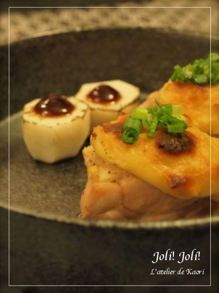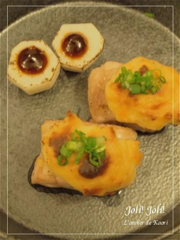 ![]() 付け合わせは茹でた海老芋にバーナーで焼き色をつけて、甘味噌をかけたもの。