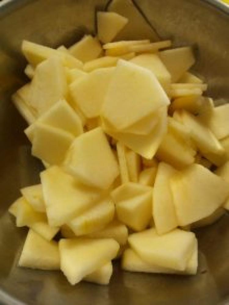 ![]() ダマが無くなったらりんごを入れてまんべんなく混ぜる。