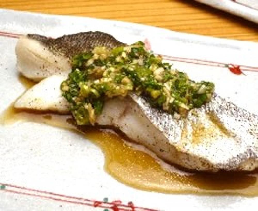 別の皿に魚を盛り付け、上から香味ソースをたっぷりかける。