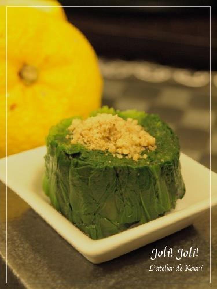 全体を沈めて、煮立ってきたらほうれん草の上下を入れかえる。