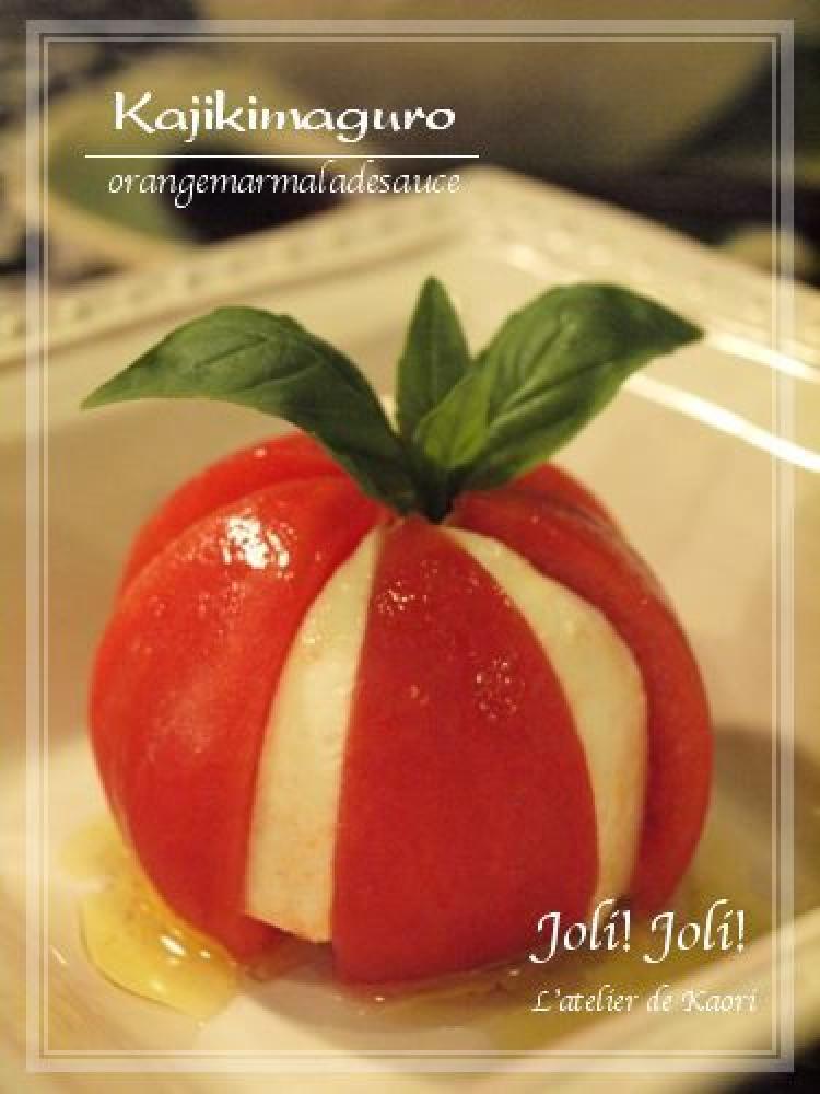 フルーツトマトを湯剥きして縦に6等分に切る。