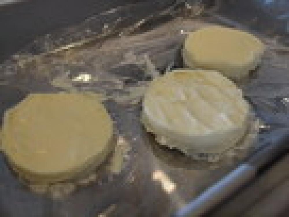 ![]() 転写シートなどの上に、直径6cmくらいのセルクルを置き(2)を薄く伸ばし、冷やし固めます。*薄い方が食べやすいです。