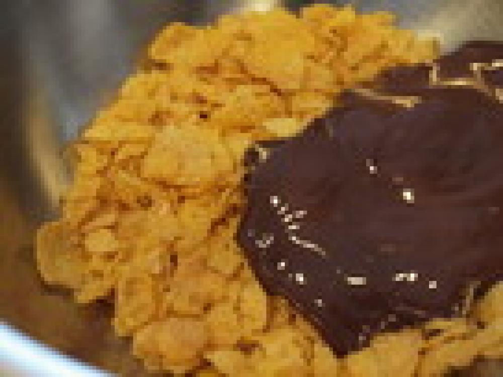 ![]() コーンフレークを少し砕き、テンパリングしたチョコレートとよく混ぜる。
