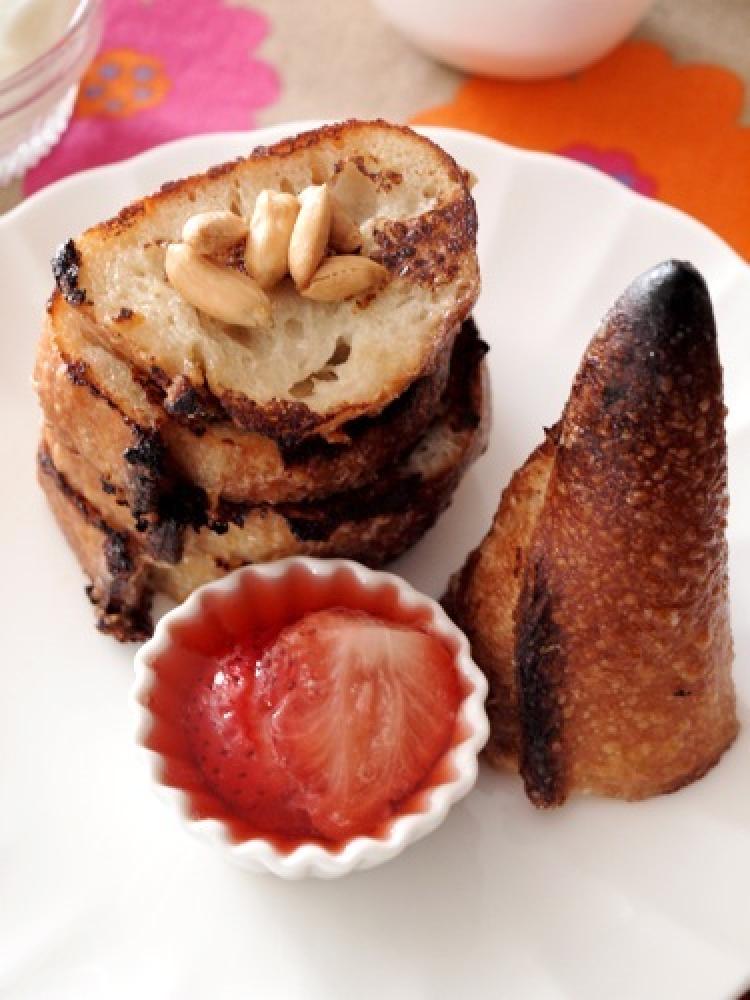 お砂糖を混ぜたミルクをたっぷり含ませたバケットをバターを溶かしたフライパンで両面焼きます。