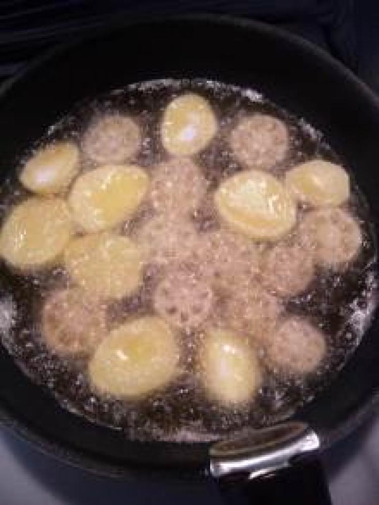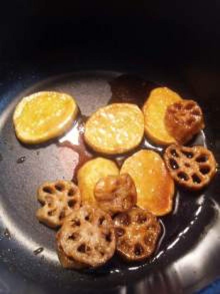 ![]() ☆を小鍋に入れて煮立て、揚がった蓮根とジャガイモを入れて絡めたら完成。