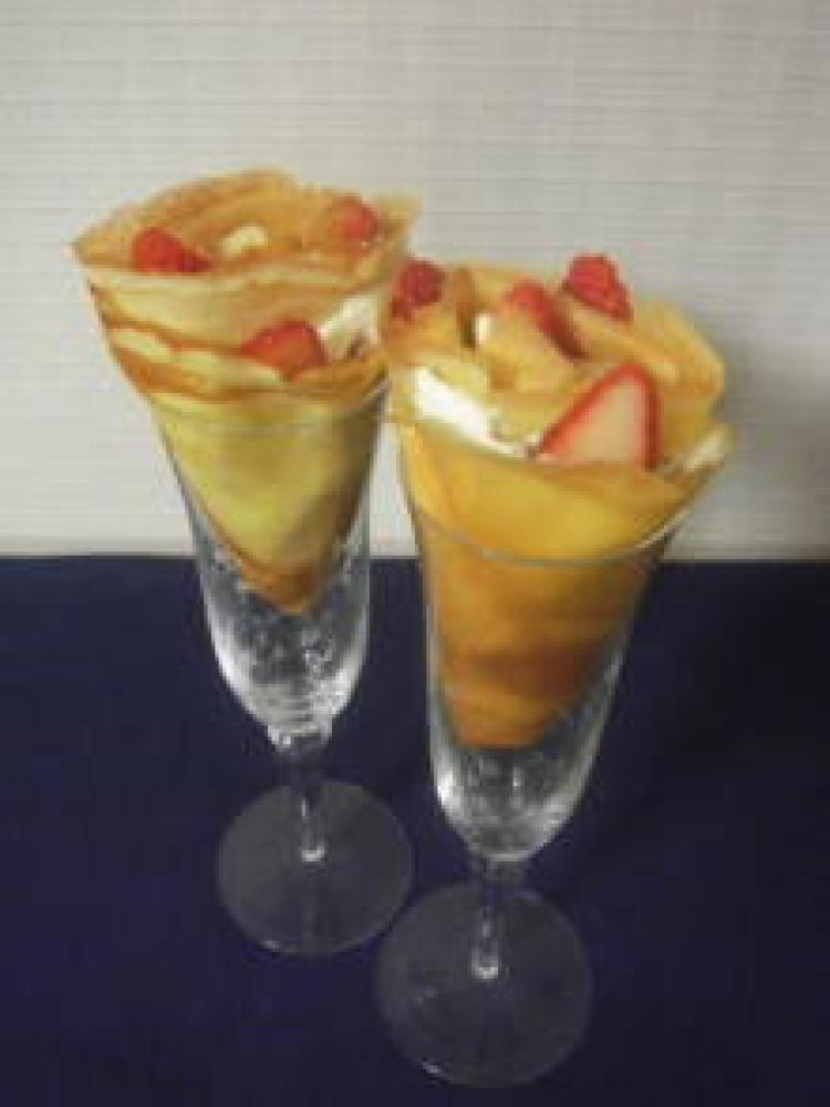 フライパンに分量外のバターをしいて、生地を薄く流し込み焼く。端が茶色くなってきたら、ひっくり返して、裏面もさっと焼く。