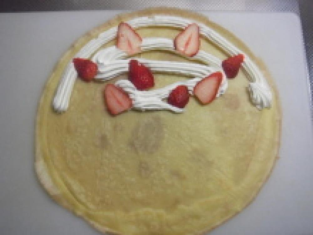 生地の上半分に、ホイップした生クリームを絞り出す。 |